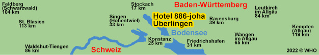 (25 km mit der Autofähre), Radolfzell (28 km), Gemüseinsel Reichenau (28 km), Friedrichshafen (31 km), Singen (33 km), Ravensburg